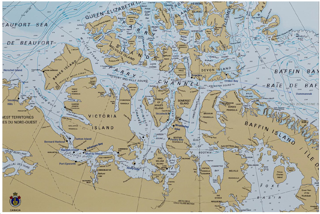 Unsere erste Anlandung auf kanadischem Boden war in Herschel Island, danach besuchten wir Ikaahuk (Sachs Harbour), Ulukhaktok (Holman), Johansen Bay, Iqaluktuuttiaq (Cambridge Bay) und Uqsuqtuuq (Gjoa Haven) daneben unbewohnte Inseln wie Sutton Island, Bernhard Harbour, Magnak Island, Murray Island, Jenny Lind Island, die Pasley Bay, den Wrottesley Inlet und die Bellot Strait.